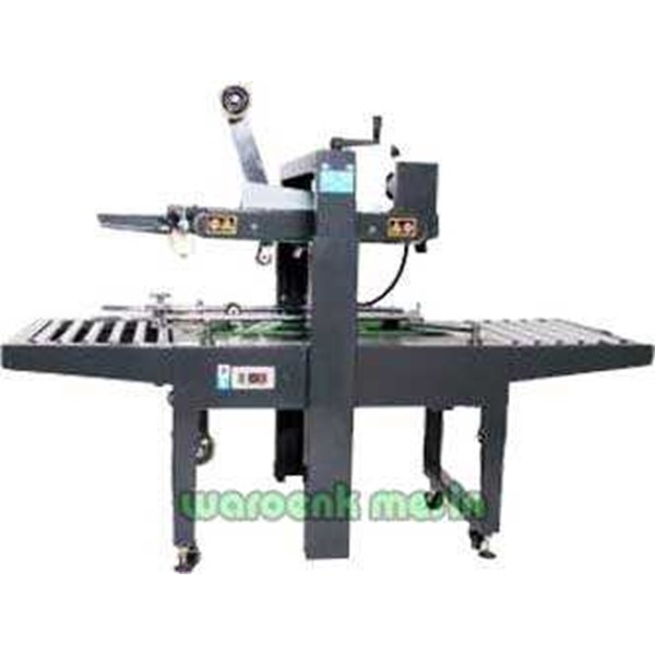 Sistem kerja mesin menggunakan motor untuk menggerakan kardus masuk ke proses pengemasan plakban. Carton Sealer Machine / Mesin Plakban Kardus adalah mesin yang digunakan untuk merekatkan kardus dengan plakban / tape. Mesin seperti ini banyak digunakan oleh perusahaan Air Minum Dalam Kemasan ( AMDK) untuk proses akhir pengemasan produk AMDK mereka ke dalam kardus.